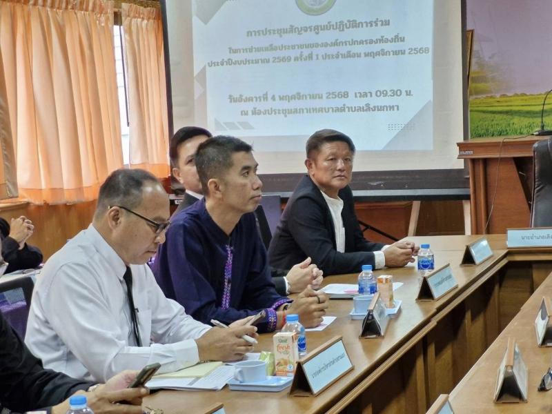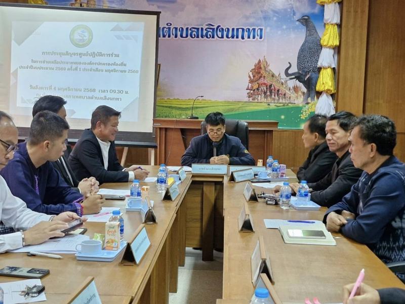 วันอังคารที่ 4 พฤศจิกายน 2568 เวลา 09.30 น. นายสรพงษ์ ชายแก้ว นายอำเภอเลิงนกทา ได้มอบหมายให้นายชิราวุธ ผากา ท้องถิ่นอำเภอเลิงนกทา ทำหน้าที่เป็นประธานในการประชุมสัญจรศูนย์ปฏิบัติการร่วมในการช่วยเหลือประชาชนขององค์กรปกครองท้องถิ่นประจำปีงบประมาณ พ.ศ. 2569 ครั้งที่ 1 ประจำเดือน พฤศจิกายน 2568 โดยมีนายกเทศมนตรีตำบลและนายกองค์กรปกครองส่วนท้องถิ่น ปลัดเทศบาลและปลัดองค์กรปกครองส่วนท้องถิ่น สังกัดองค์กรปกครองส่วนท้องถิ่นในพื้นที่อำเภอเลิงนกทา เข้าร่วมการประชุมดังกล่าว ????ณ ห้องประชุมสภาเทศบาลตำบลเลิงนกทา อำเภอเลิงนกทา จังหวัดยโสธร
