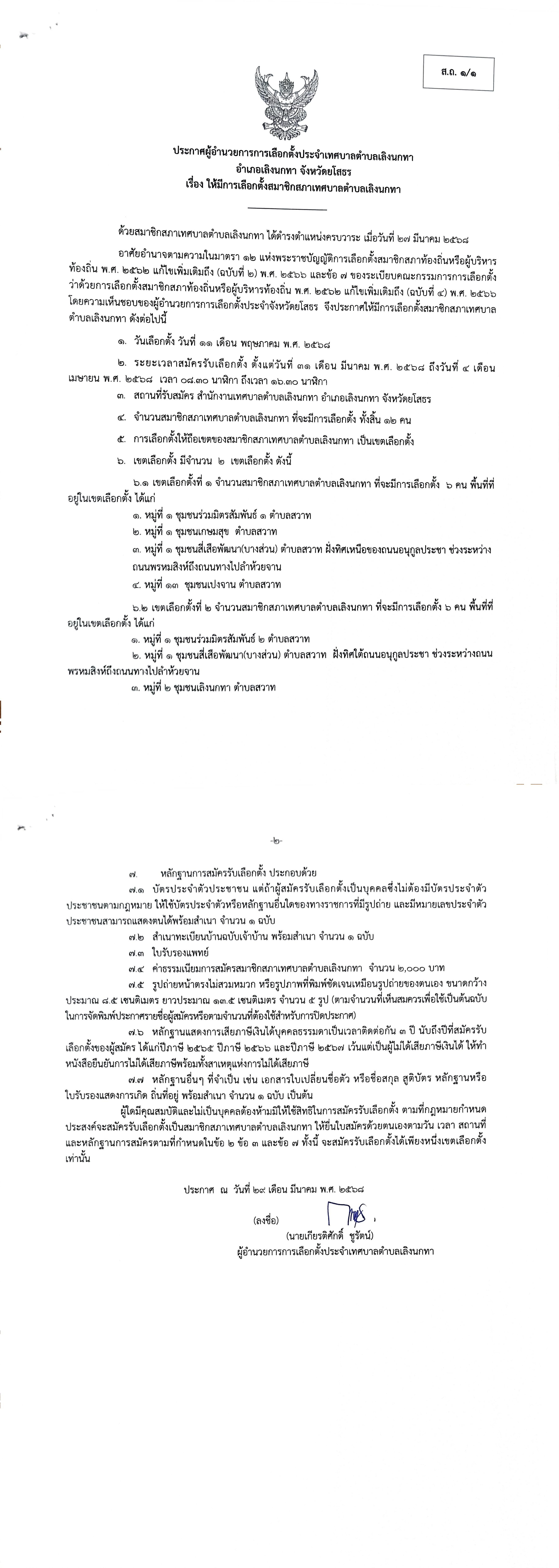 ชื่อเรื่อง : ประกาศผู้อำนวยการ การเลือกตั้งประจำเทศบาลตำบลเลิงนกทา อ.เลิงนกทา จ.ยโสธร