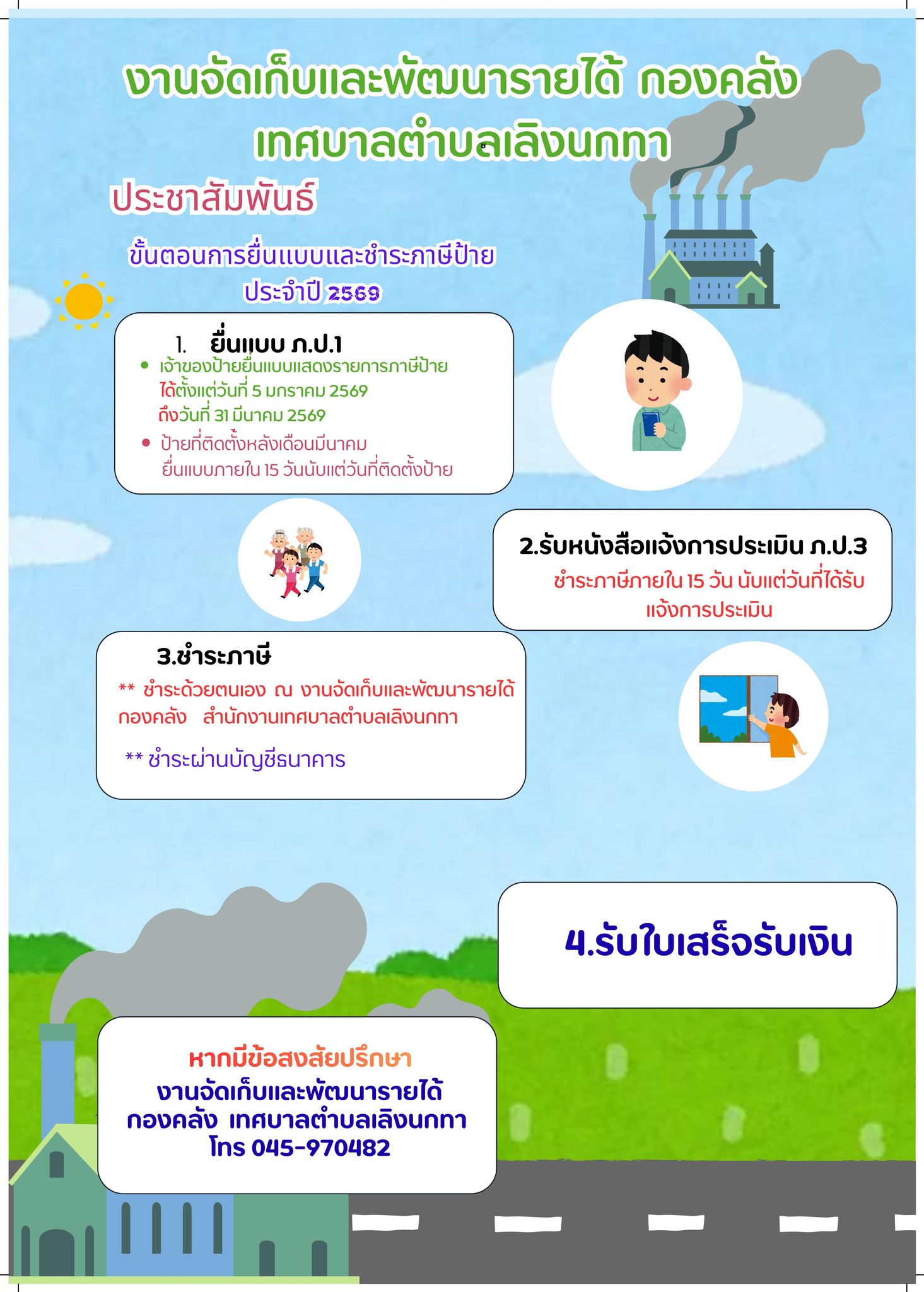 ประชาสัมพันธ์ ขั้นตอนการยื่นแบบการชำระภาษีป้าย ประจำปี 2569